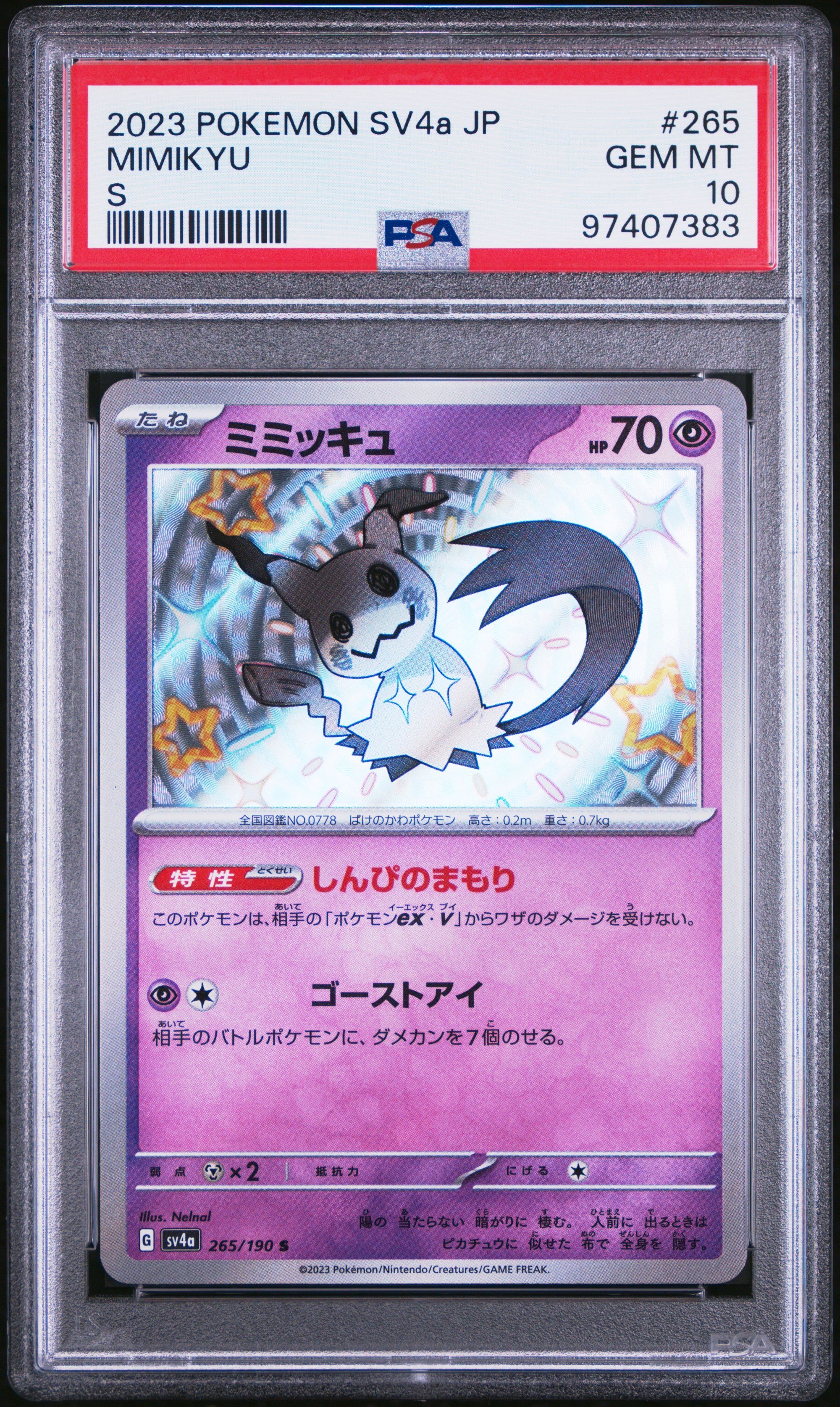 PSA 10 GEM MT Mimikyu - Pokemon Card - SV4a - 265/190